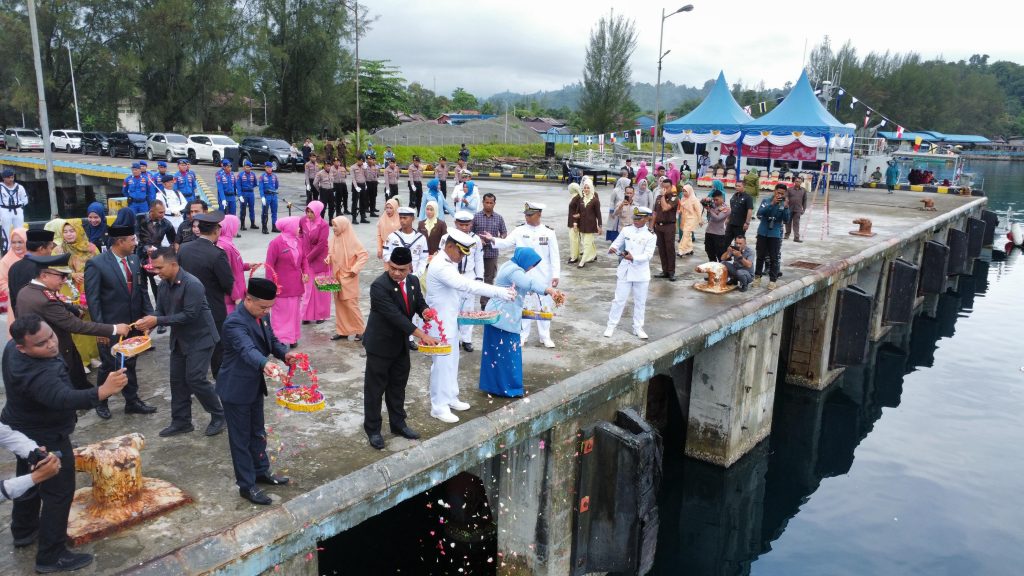 TNI AL, Simeulue,- Komandan Pangkalan TNI AL Simeulue Letkol Laut (P) Oyu Mulia Sukmana, S.T., M.T., M.Tr. Opsla., didampingi Ketua Cabang 8 Korcab l DJA I Ny. Meylina Oyu Mulia, melaksanakan kegiatan Tabur Bunga dalam rangka HUT RI Ke-79 Tahun, bertempat di Dermaga Kargo Sinabang, Desa Suka Jaya, Kecamatan Simeulue Timur, Kabupaten Simeulue, Jum’at (16/08/2024).