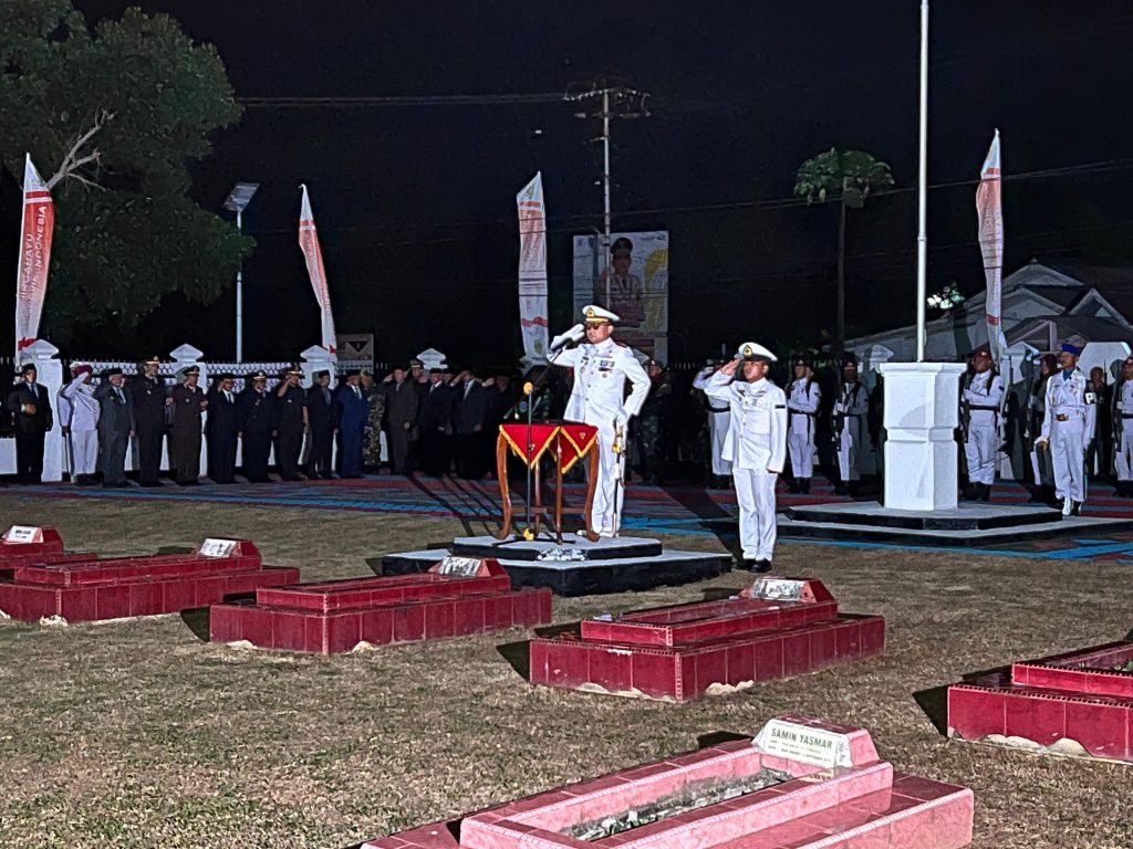 TNI AL, Dabo Singkep,- Upacara Apel Kehormatan dan Renungan Suci (AKRS) dilaksanakan oleh Pemerintah Kabupaten Lingga, bertindak selaku Inspektur Upacara adalah Komandan Pangkalan TNI Angkatan Laut Dabo Singkep (Danlanal DBS) Letkol Laut (P) Tri Hermawan MA, M.Tr. Opsla, C.T.M.P., sedangkan Komandan AKRS yaitu Danden Pomal Lanal Dabo Singkep Kapten Laut (PM) Sedyo Wijoyo. Upacara Apel Kehormatan dan Renungan Suci (AKRS) dilaksanakan pada Sabtu 17 Agustus 2024 pukul 00.00 WIB di Taman Makam Pahlawan (TMP) Dabo Singkep, Sabtu (17/8/2024).