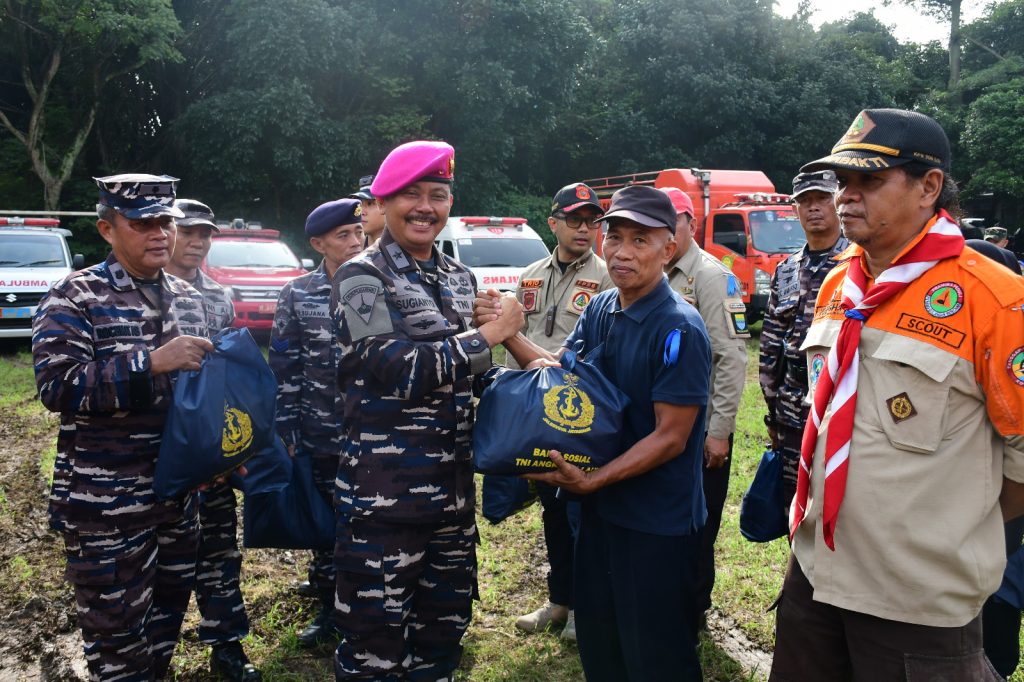 Pada kesempatan ini juga Kadispotmaral memberikan paket sembako secara simbolis kepada relawan dan masyarakat sekitar daerah latihan sebanyak 250 paket sembako.