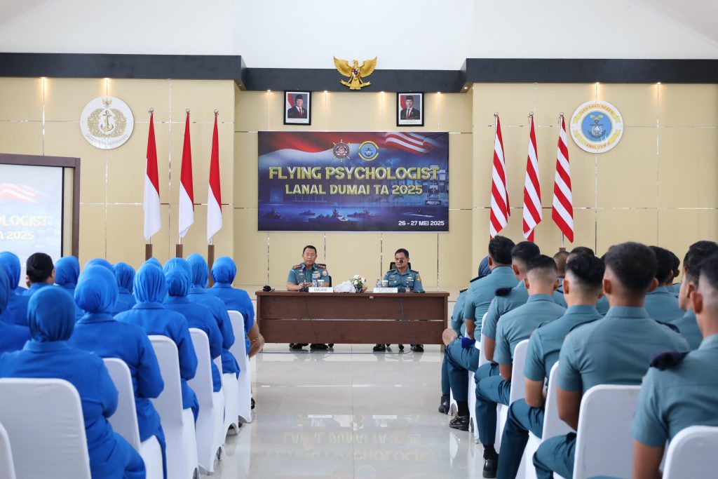 TNI AL, Dumai,- Penuh antusias dan semangat, Komandan Lanal Dumai Kolonel Laut (P) Abdul Haris S.E., M.M.D.S., bersama Prajurit, PNS dan Ibu Jalasenastri Lanal Dumai mengikuti rangkaian kegiatan Flying Psychologist, bertempat di Gedung Serba Guna Wijaya Kusuma Mako Lanal Dumai, Jalan Yos Soedarso No.01 Kota Dumai, Senin (26/5/2025).