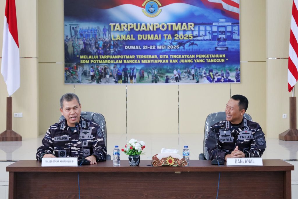 TNI AL, Dumai,- Bertempat di Gedung Serba Guna Wijaya Kusuma, Mako Lanal Dumai, Jan Yos Soedarso No.01 Kota Dumai, Komandan Pangkalan TNI Angkatan Laut Dumai Kolonel Laut (P) Abdul Haris S.E., M.M.D.S., beserta seluruh Danposal serta Babinpotmar Lanal Dumai mengikuti Penataran Kemampuan Potensi Maritim Tersebar T.A 2025, Rabu (21/5/2025).