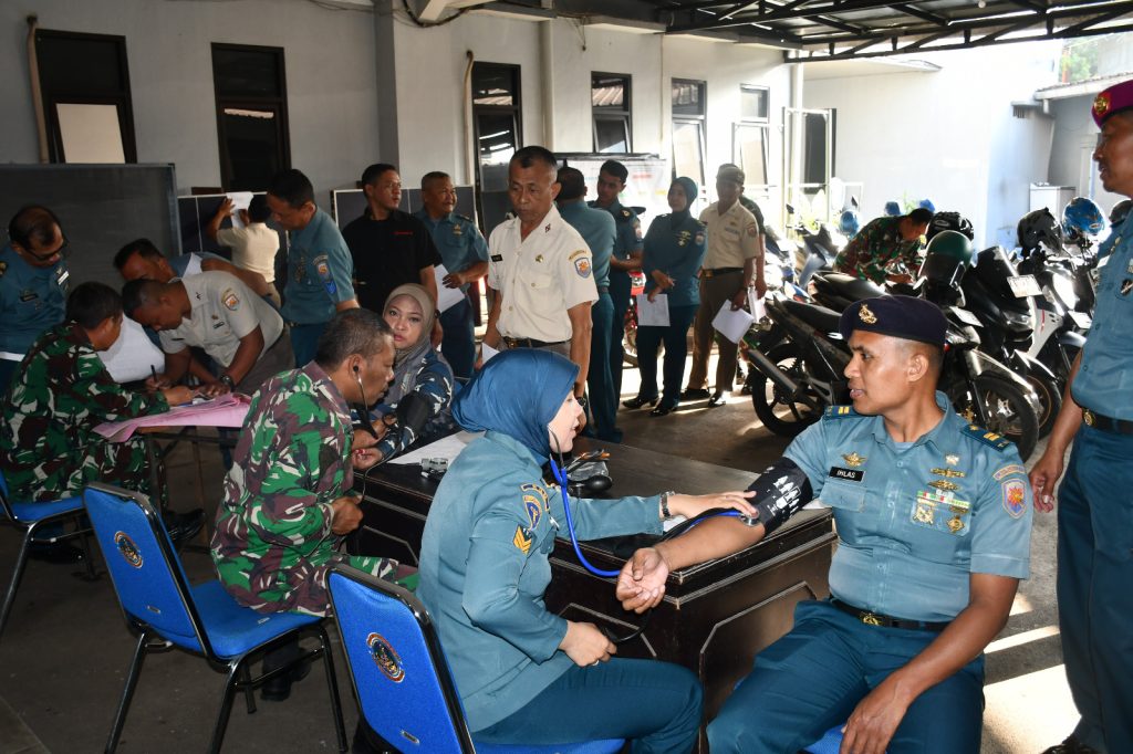 Personel Lanal Bandung yang terdiri dari Perwira, Bintara, Tamtama, dan PNS mengikuti rangkaian pemeriksaan kesehatan secara menyeluruh. Urikes ini mencakup pengisian blangko, pengukuran tensi, pengambilan sampel darah dan urine, pemeriksaan mata, radiologi, EKG, dan konsultasi dokter.