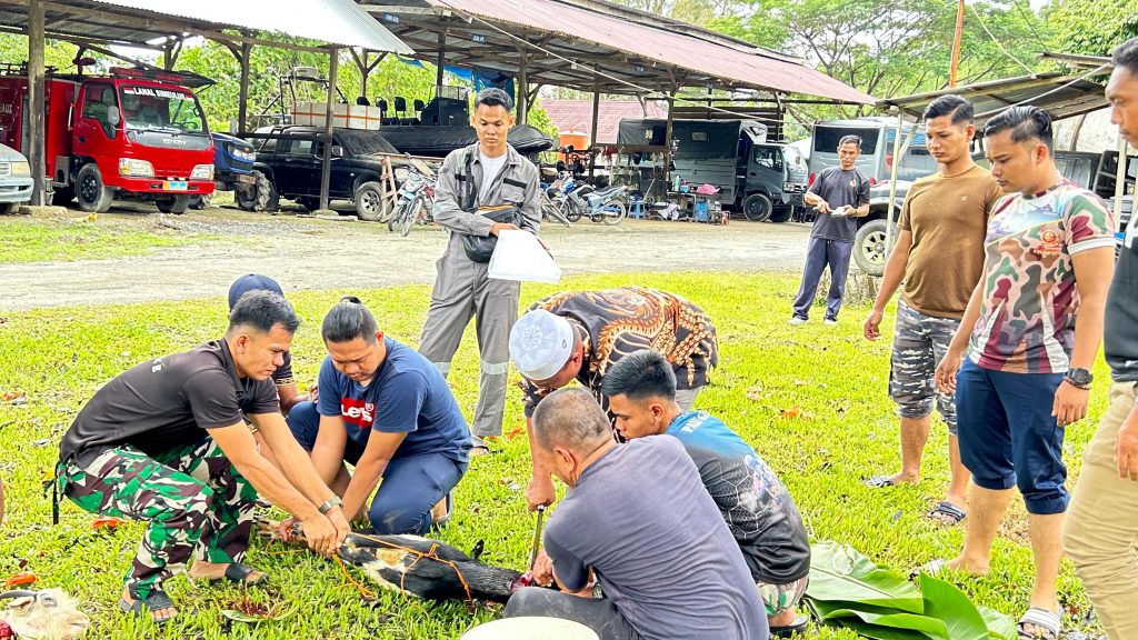 TNI AL, Simeulue,- Dalam rangka memperingati Hari Raya Idul Adha 1446 H/2025 M, Pangkalan TNI AL Simeulue melaksanakan kegiatan pemotongan hewan qurban yang berlangsung di Markas Komando Lanal Simeulue, Desa Lugu, Kecamatan Simeulue Timur, Kabupaten Simeulue, Jumat (6/6/2025).