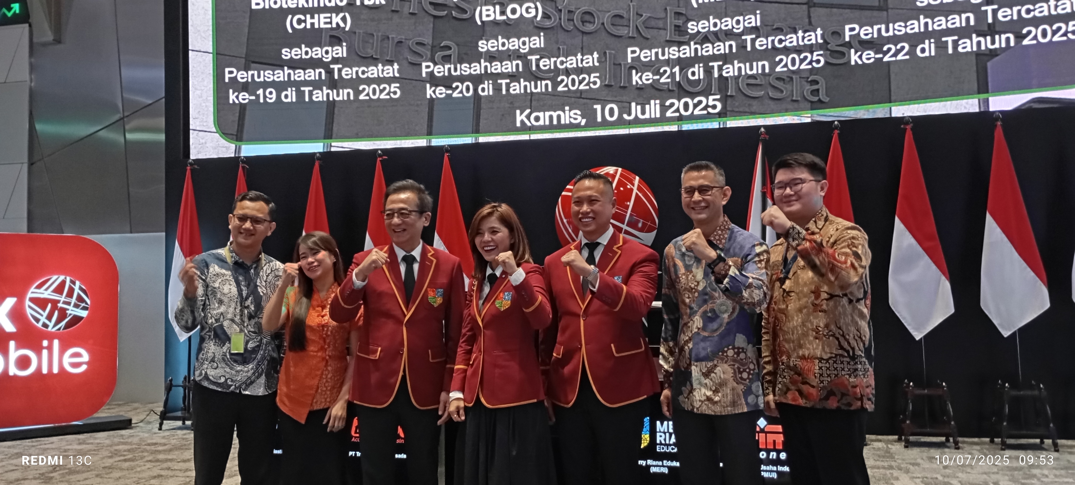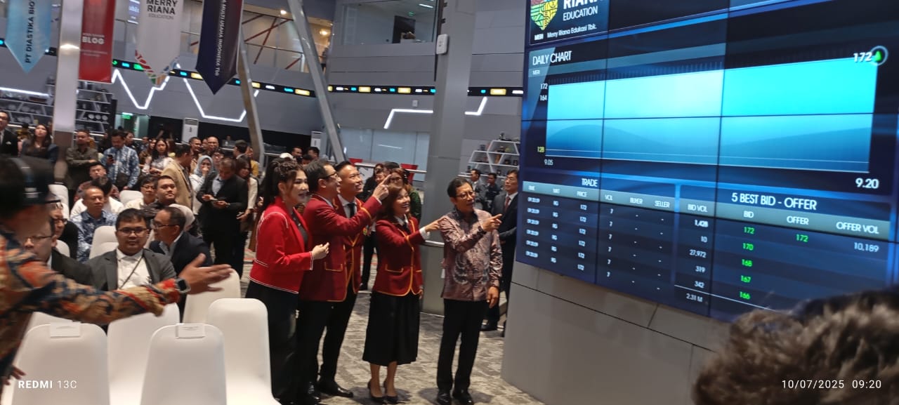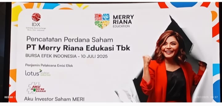 Jakarta, 10 Juli 2025 – PT Merry Riana Edukasi Tbk, perusahaan yang bergerak di sektor pendidikan dan pengembangan diri terkemuka di Indonesia, hari ini resmi mencatatkan saham perdana atau Initial Public Offering (IPO) di Bursa Efek Indonesia (BEI) dengan kode saham MERI di Papan Pengembangan. Perseroan yang didirikan pada tahun 2014 oleh Merry Riana ini resmi menjadi perusahaan ke 21 yang tercatat di BEI sepanjang tahun 2025. Pencatatan ini merupakan key milestone dalam perjalanan Perseroan untuk melangkah sebagai perusahaan publik yang accountable, transparan, dan bertanggungjawab kepada seluruh investor, masyarakat, dan seluruh stakeholders dalam menjalankan bisnis ke depan.