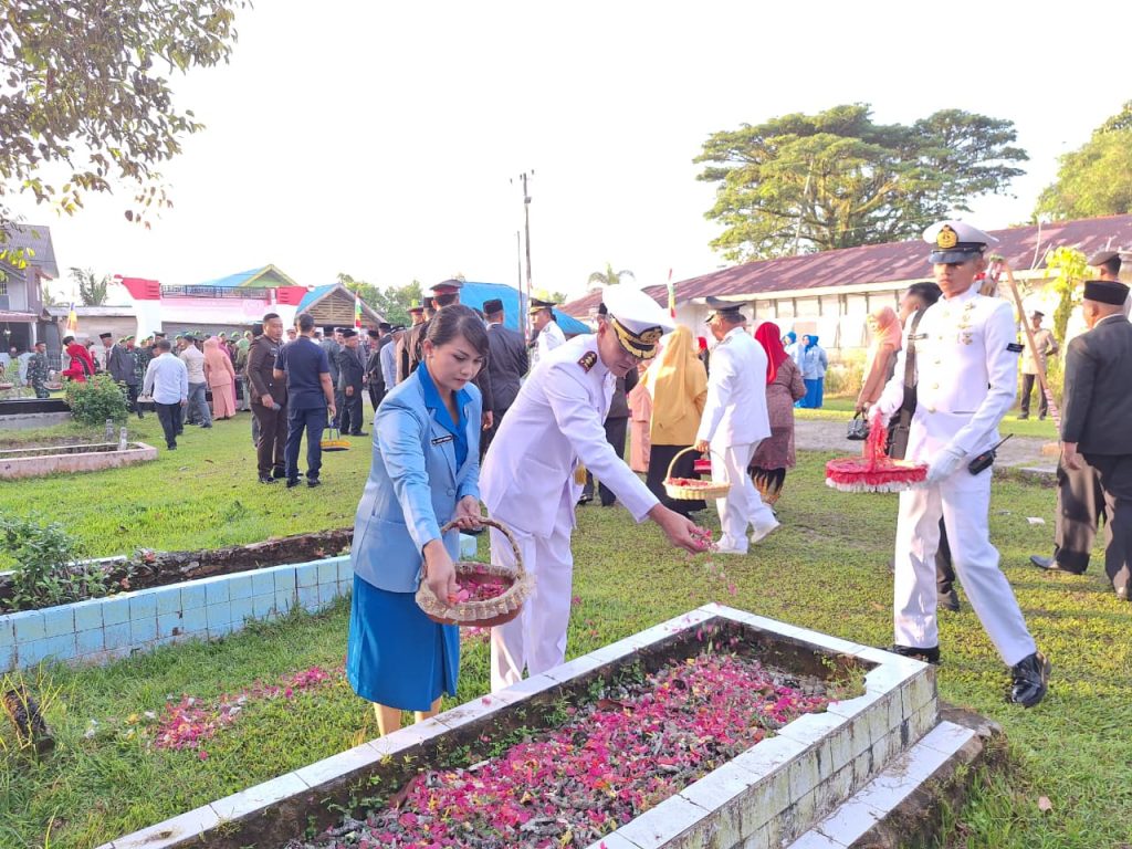 TNI AL, Simeulue,- Dalam rangka memperingati HUT Ke-80 Kemerdekaan RI, Komandan Pangkalan TNI Angkatan Laut Simeulue Letkol Laut (P) Wisnu Pryangga N., S.T., M.Tr.Opsla. didampingi oleh Ketua Cabang 8 Korcab I DJA I Ny. Lady Wisnu Pryangga beserta Prajurit Lanal Simeulue dan Forkopimda Kabupaten Simeulue melaksanakan Upacara Ziarah dan Tabur Bunga di Taman Makam Bahagia, Desa Suka Karya, Kabupaten Simeulue, Minggu (17/8/2025).