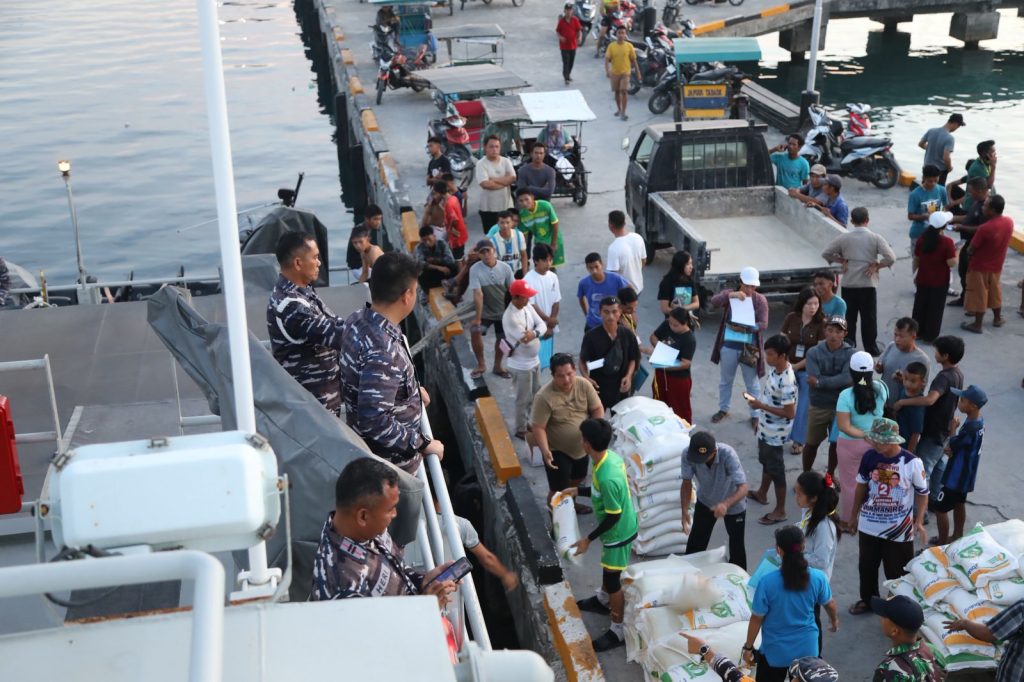 TNI AL, Nias Selatan,- TNI Angkatan Laut dalam hal ini Lanal Nias dan Bulog bekerjasama mendistribusikan Bantuan Pangan Presiden RI ke Pulau-Pulau Terkecil di Nias menggunakan KAL Hinako 1-2-19, Kamis (21/8/2025).