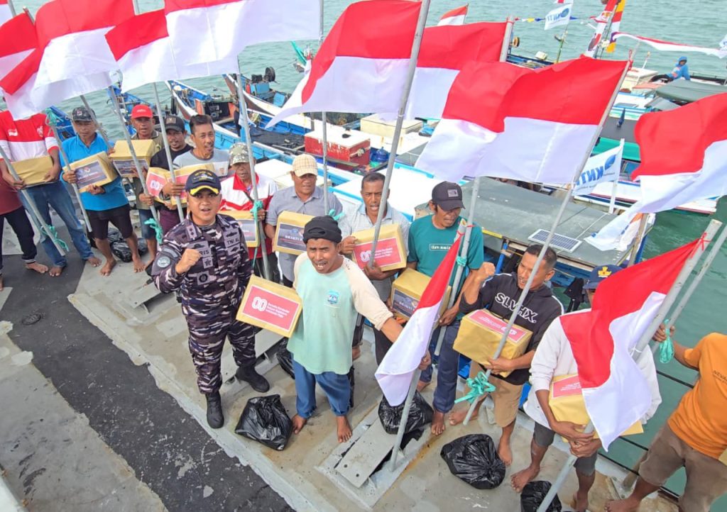 TNI AL, Koarmada II, Semangat peringatan Hari Ulang Tahun Ke-80 Kemerdekaan Republik Indonesia turut berkobar di wilayah perbatasan laut. KRI Ajak-653 dari Satuan Kapal Cepat (Satkat) Koarmada II yang sedang melaksanakan Operasi Ambalat Dibawah Kendali Operasi (BKO) Guspurla Koarmada II, menggelar bakti sosial dan membagikan Bendera Merah Putih kepada nelayan disekitar Perairan Karang Unarang, Perbatasan RI–Malaysia, Jumat (15/8/2025).