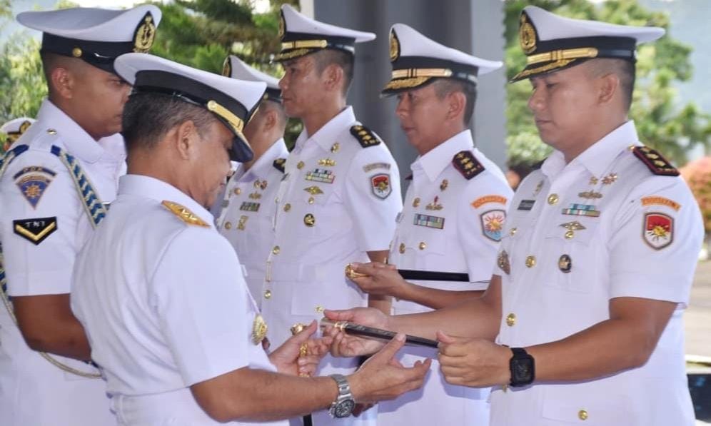 TNI AL, Bengkulu,- Komandan Komando Daerah TNI Angkatan Laut (Dankodaeral) II Padang Laksamana Muda TNI Sarimpunan Tanjung pimpin Serah Terima Jabatan Danlanal Bengkulu dari Letkol Laut (P) Octo Manurung, S.T., kepada Letkol Laut (P) Nurwahidin, S.H., M.Tr.Opsla., di Loby Mako Kodaeral II Padang, Rabu (3/09/2025).