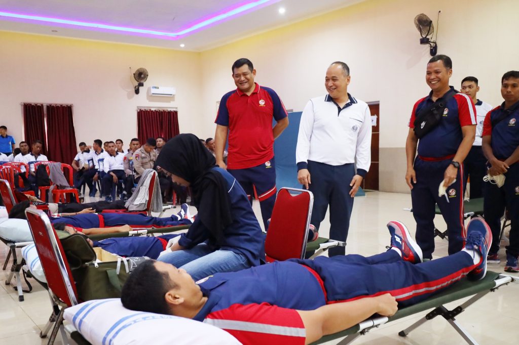 Setelah melaksanakan olahraga bersama, Dankodaeral IX melaksanakan peninjauan Bhakti Kesehatan Donor Darah yang dilaksanakan di Gedung Manggala Loka Mako Kodaeral IX.