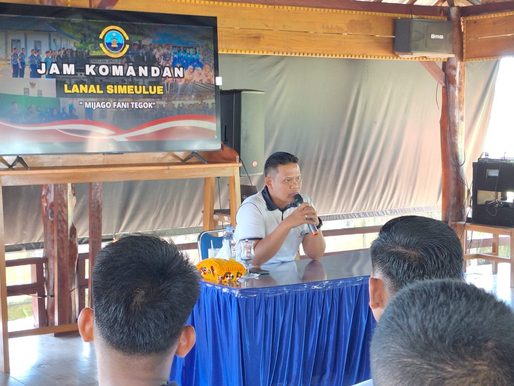 TNI AL, Simeulue,- Komandan Pangkalan TNI AL Simeulue Letkol Laut (P) Oyu Mulia Sukmana S.T., M.T., M.Tr.Opsla., memberikan arahan langsung kepada Prajurit Lanal Simeulue melalui Jam Komandan, bertempat di Markas Komando Lanal Simeulue, Desa Lugu, Kecamatan Simeulue Timur, Kabupaten Simeulue, Jumat (25/4/2025).