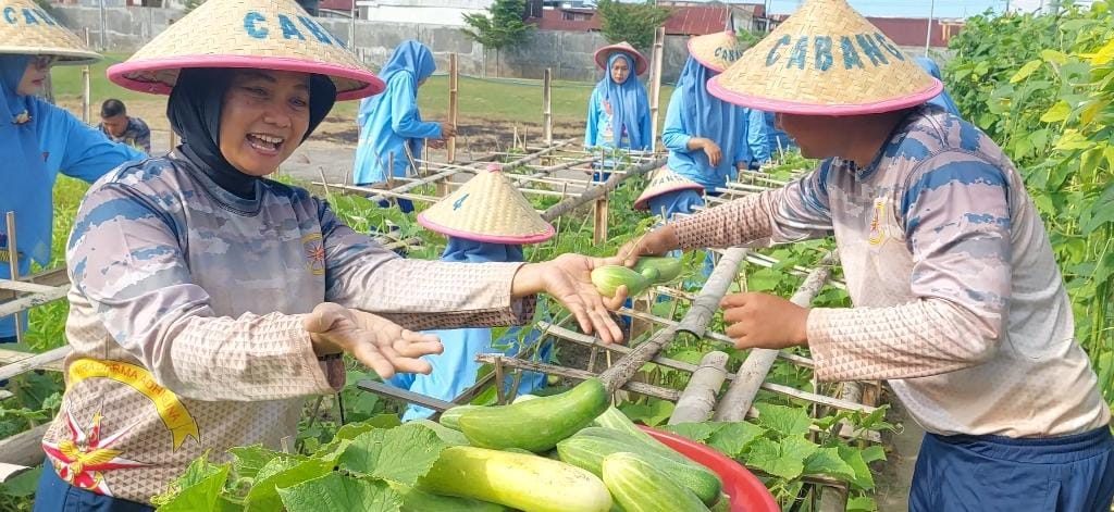 Usai melaksanakan panen kebun, hasilnya dibagikan kepada keluarga prajurit dan sebagian diolah untuk makan siang bersama dengan penuh kekeluargaan.